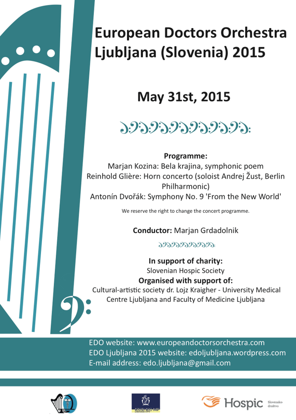 Our summer concert is in Ljubljana, capital of Slovenia, on Sunday 31 May 2015 (7.30pm) at the Slovenian Philharmonic.